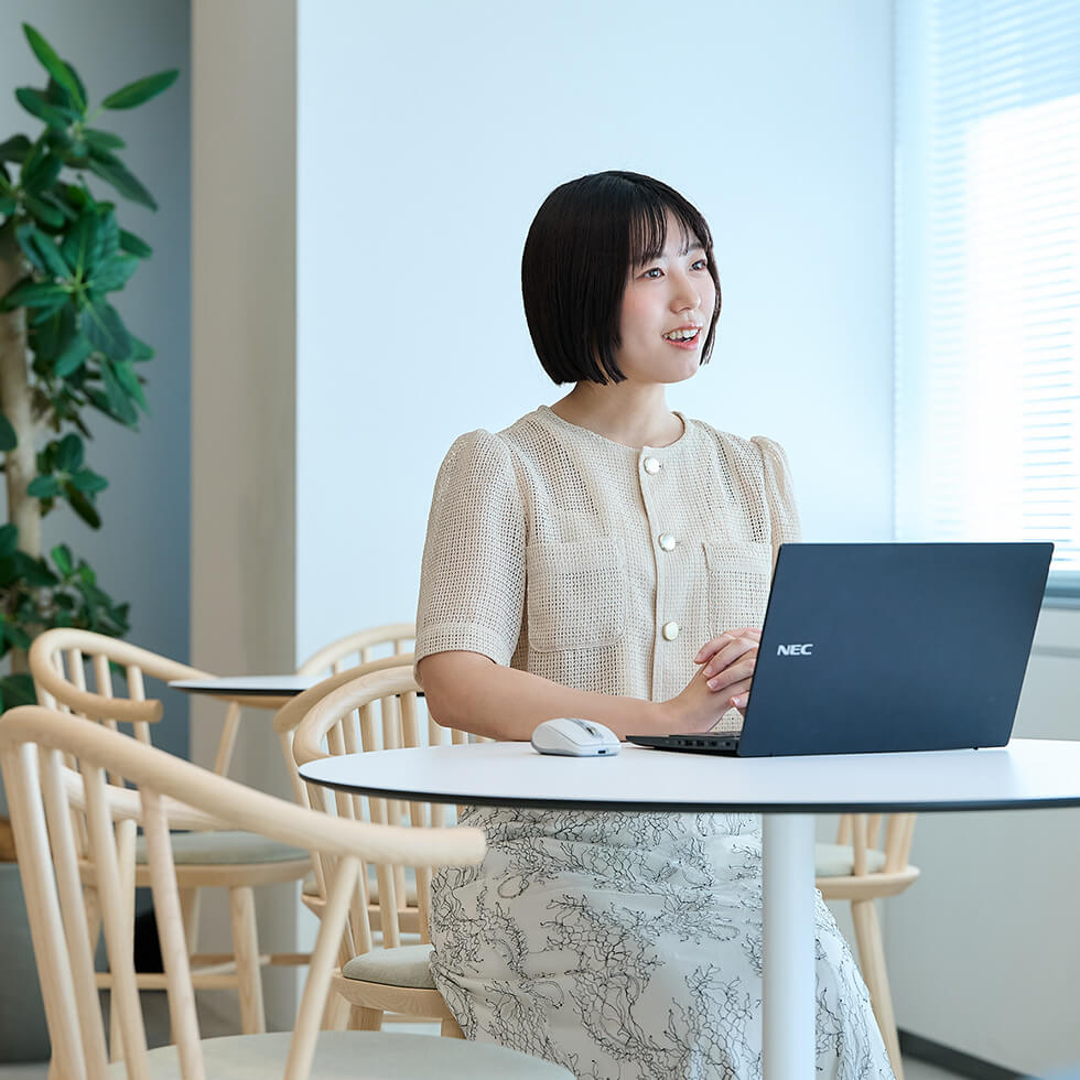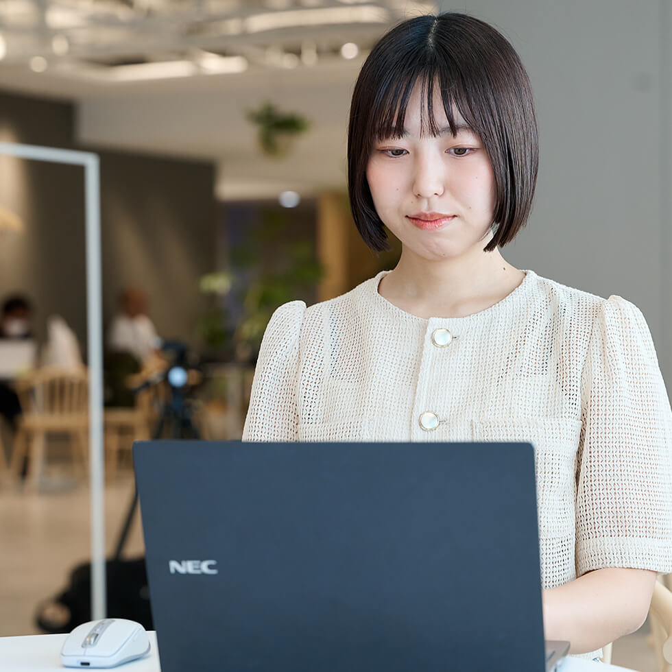2023年新卒入社。大学では社会学を専攻し、アンケート設計や分析手法を学ぶ。「仕組みづくりを通じて人の役に立ちたい」という思いから就職活動を進め、IT業界で仕組みや環境から人を支えることに魅力を感じて当社に入社。現在は社内ポータルの企画・構築やシステム導入、ベンダー・社内調整などを担当。
