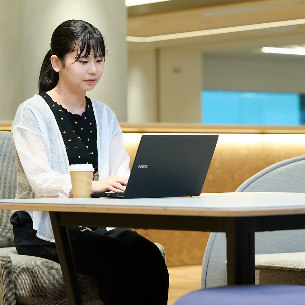 2025年に新卒入社。大学では会計学を専攻し、高校時代から興味を持っていた会計分野を深く学ぶ。インターンを通じてシェアードサービスセンターの仕組みに魅力を感じ、NECビジネスインテリジェンス(以下NBI)に入社。現在は資金チームで税金の納付書支払や海外送金に伴う為替予約などを担当。