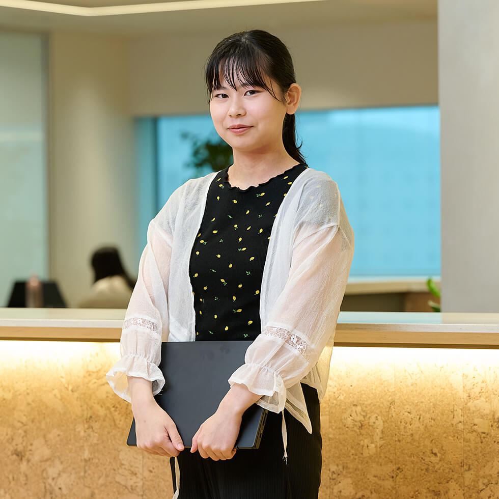 入社して感じたのは、職場の温かさと自由度の高さです。新人の自分にも多くの人が声をかけてくれ、相談しやすい雰囲気があります。服装や働き方の自由度も高く、リモートと出社を柔軟に組み合わせています。業務の中ではシステムを多く使う点に最初は戸惑いましたが、疑問を持ちながら仕組み全体を理解することを大切にしています。改善に向けた発言も年次を問わず歓迎されるので、日々「もっと良くできないか」と考える姿勢を意識しています。