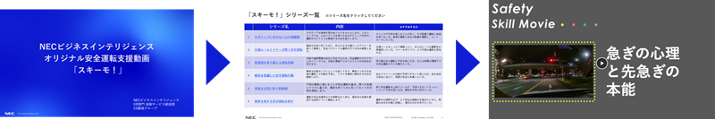 NECビジネスインテリジェンスの交通事故防止ソリューションのなかでも、他と大きく異なるのは「交通安全講習会」です。